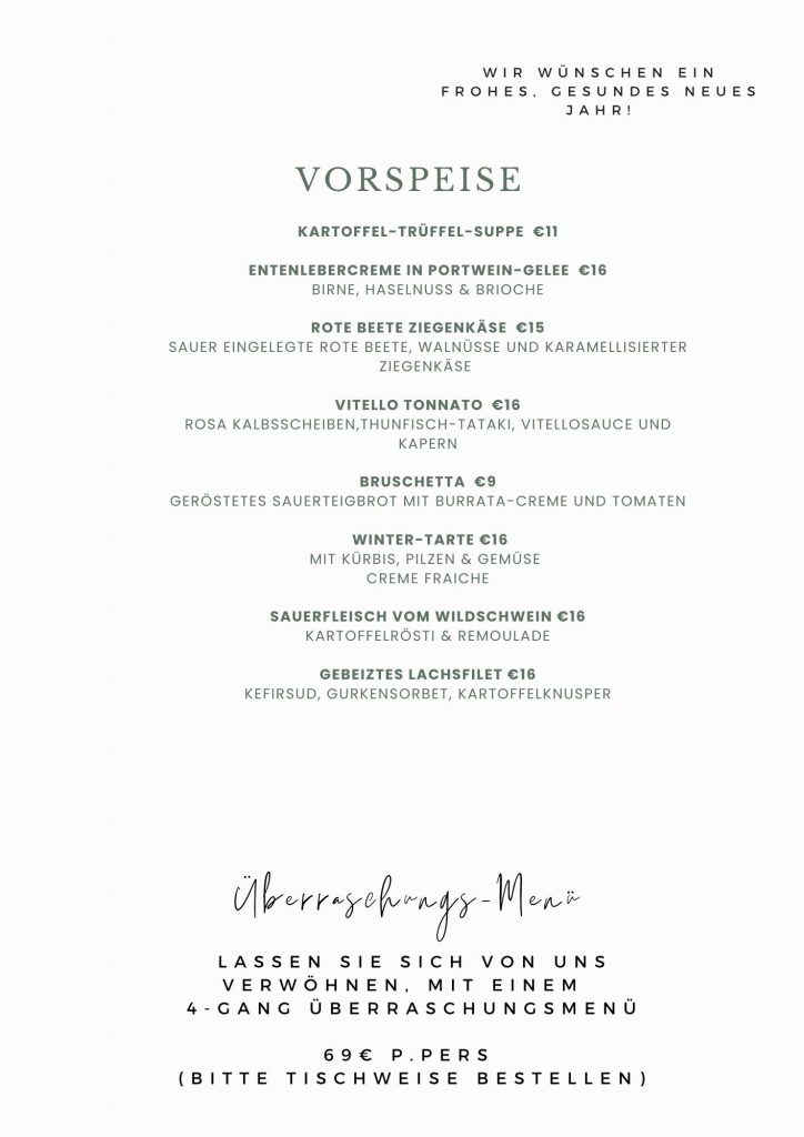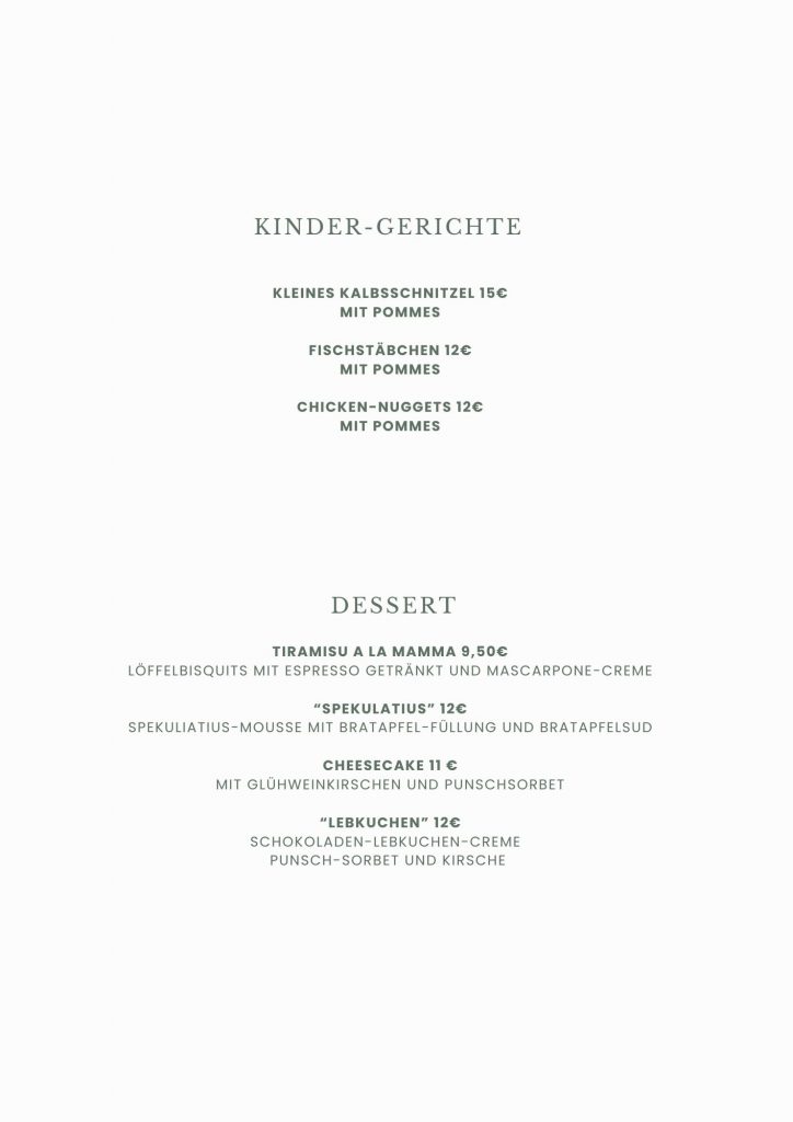 • Speisekarte